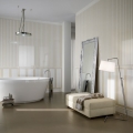 Коллекция была создана с использованием революционной цифровой струйной системы печати на керамике. Инновационная система предлагает неограниченные возможности точного репродуцирования графических мотивов на керамике и открывает целый ряд совершенно новых перспектив в дизайне и производстве облицовочных и напольных керамических плиток. Ванная комната - большой размер 30*90, типичная линейность современной внутренней архитектуры объединились с традиционными эстетическими решениями для создания необычных декоративных эффектов.